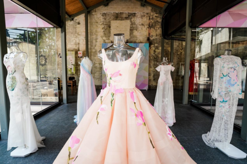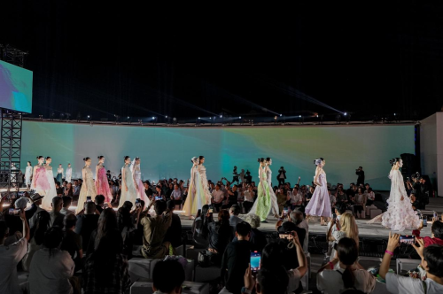 从苏绣精美针法到堆锦、绒花、 漆珠等雅致工艺,每一件高定皆为时光雕琢的艺术瑰宝;从故宫倦勤斋的江南诗意到敦煌壁画的璀璨星河,她将苏绣的百万针脚化作时空经纬,与在场嘉宾一同体会这场非遗高定之旅,触摸岁月脉络,领略传统与时尚交织的魅力 。