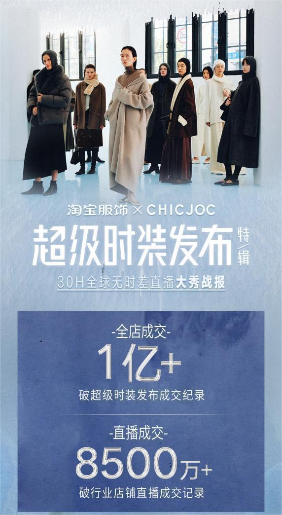 10月25日至26日,CHICJOC再度携手淘宝服饰,升级呈现2.0超级时装发布。一场以“全球织旅·共时新生”为主题的连续30小时无时差直播,将衣物与记忆交织,构筑起一场跨越时空的审美对话。活动期间,全店销售额突破1个亿,诞生23个超级百万单品,不仅刷新了品牌历史峰值,也再度改写了淘宝服饰直播天花板,成为超级时装发布首个破亿品牌直播间,彰显了其在高知女性消费市场的绝对号召力。